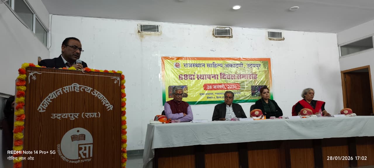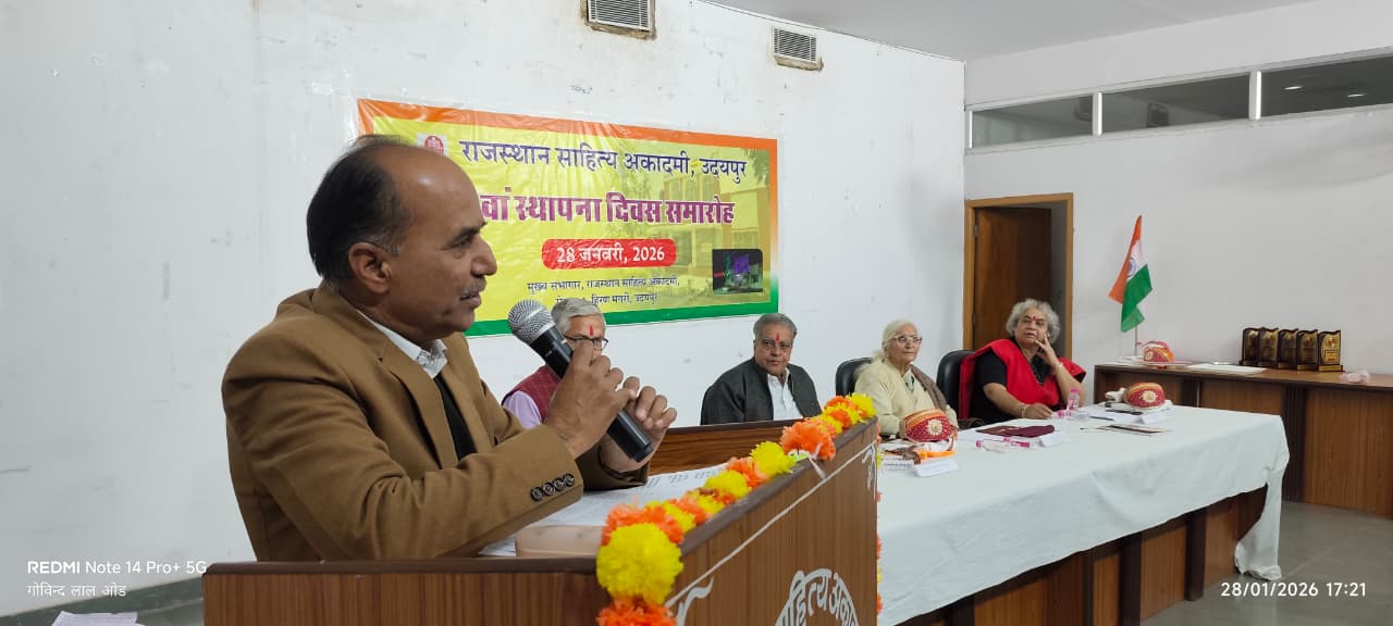 अकादमी सचिव डॉ. बसंत सिंह सोलंकी ने स्वागत उद्बोधन में कहा, “अकादमी की स्थापना 28 जनवरी 1958 को हुई थी, और यह राजस्थान में साहित्यिक सृजन, प्रचार-प्रसार तथा संरक्षण की प्रमुख संस्था बनी हुई है। राजस्थान साहित्य अकादमी पिछले 68 वर्षों से राज्य की साहित्यिक धरोहर को संजोने और नई पीढ़ी को प्रेरित करने का कार्य कर रही है। आज के दौर में साहित्य को जीवंत रखने के लिए अकादमी को और अधिक सक्रियता से नवीन माध्यमों का उपयोग करना होगा, ताकि हिंदी, राजस्थानी और अन्य बोलियों का साहित्य वैश्विक पटल पर चमक सके।”