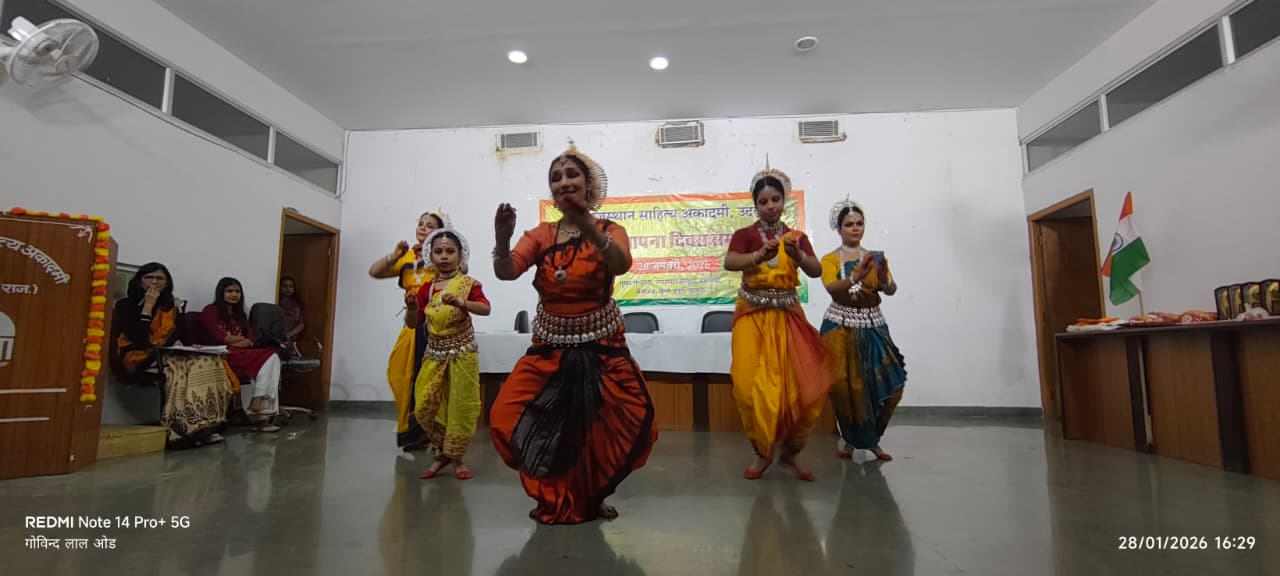 कार्यक्रम में टीम संस्था की सांस्कृतिक प्रस्तुतियाँ खासी सराही गईं। डॉ. शारदा भट्ट ने सरस्वती वंदना से समारोह की शुरुआत की, जबकि शैली श्रीवास्तव एवं उनकी टीम ने ओडिसी नृत्य की मनोरम प्रस्तुति दी। रजत मेघनानी ने विजयदान देथा की कहानी वाचन से श्रोताओं को बांधे रखा।